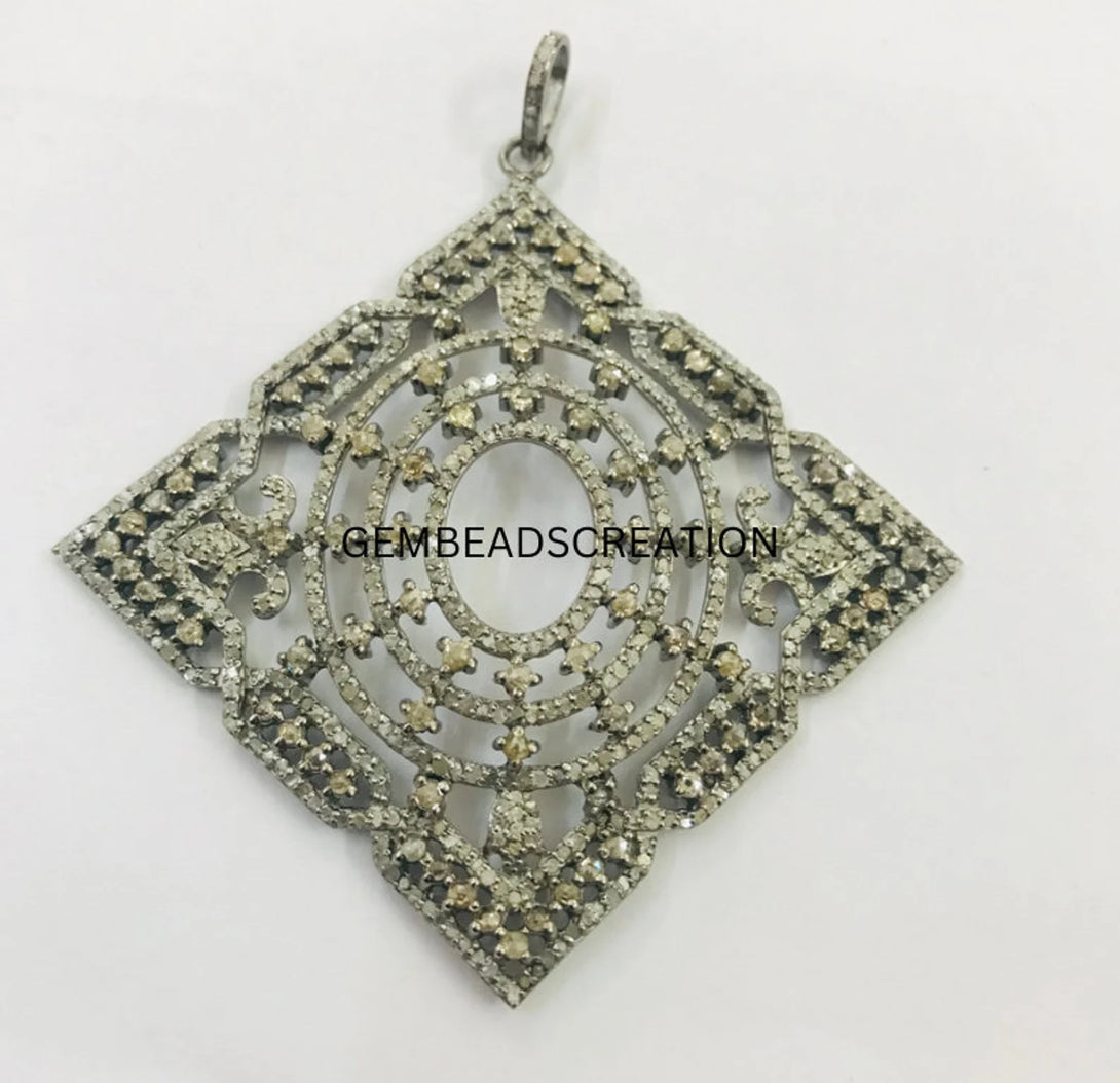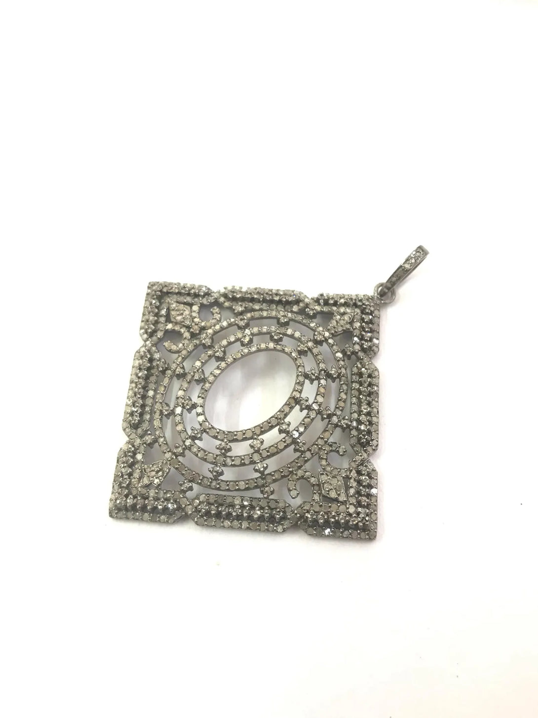 Add timeless elegance to your jewelry collection with this Antique Pave Diamond Pendant. Handcrafted in 925 sterling silver with intricate filigree detailing and set with sparkling pave diamonds, this pendant is perfect as a statement piece for necklaces. Its antique-inspired design blends classic craftsmanship with modern sophistication.