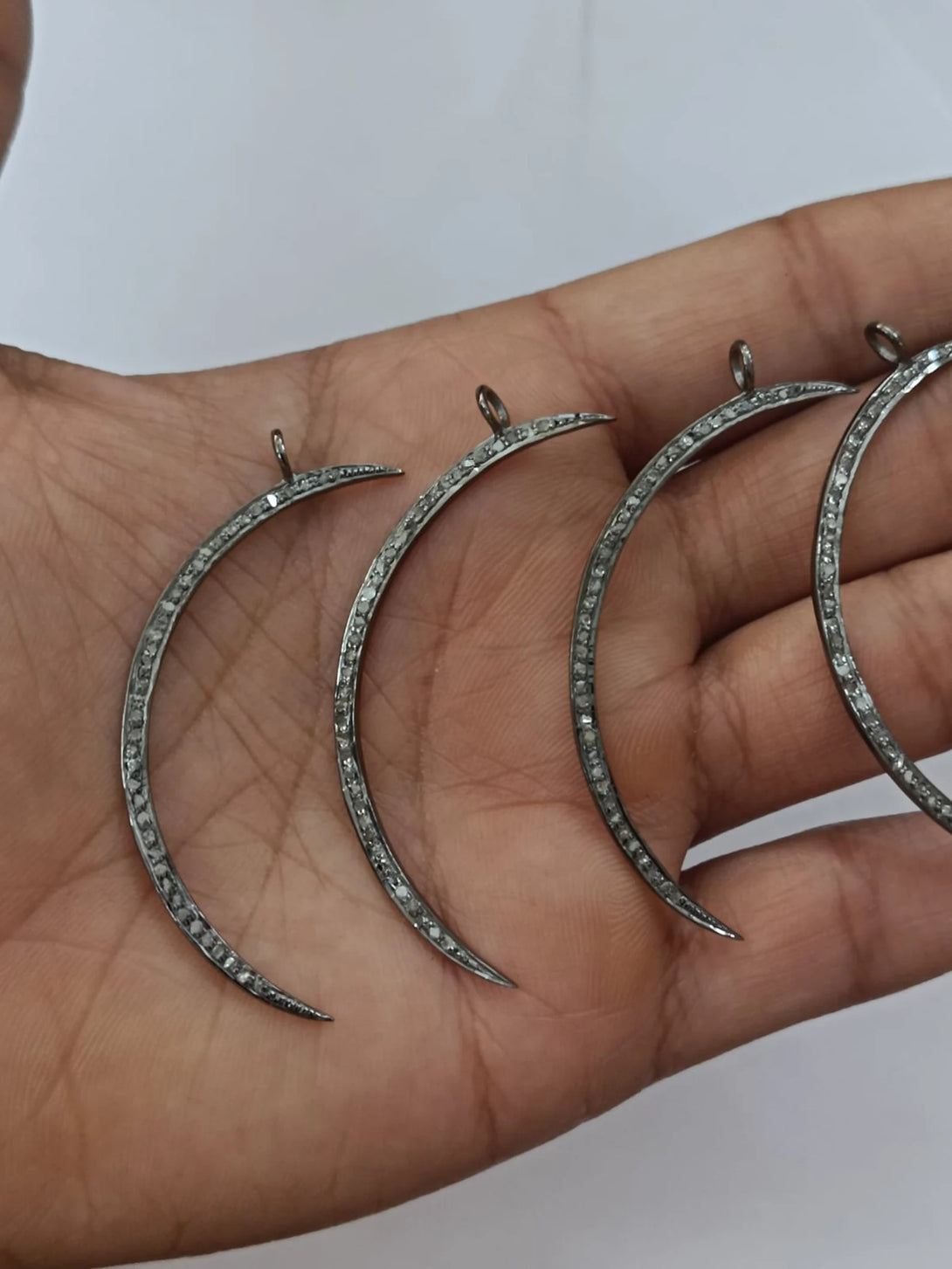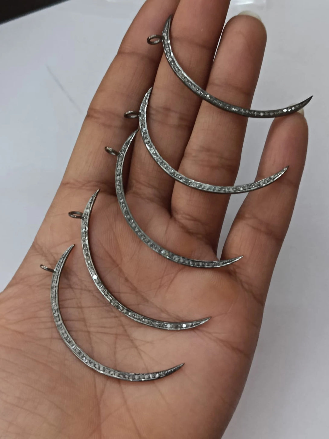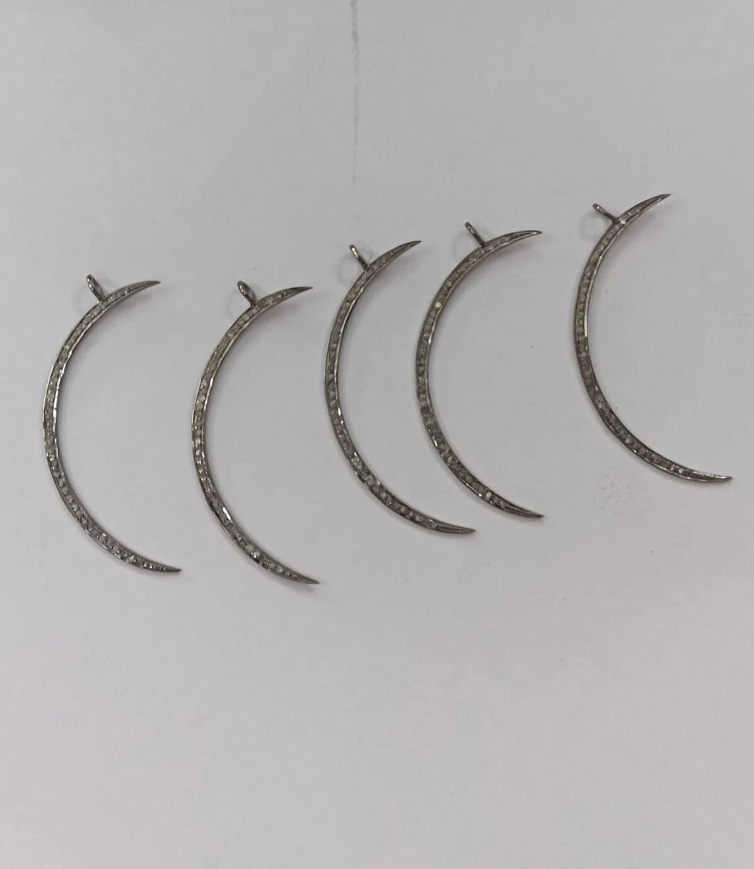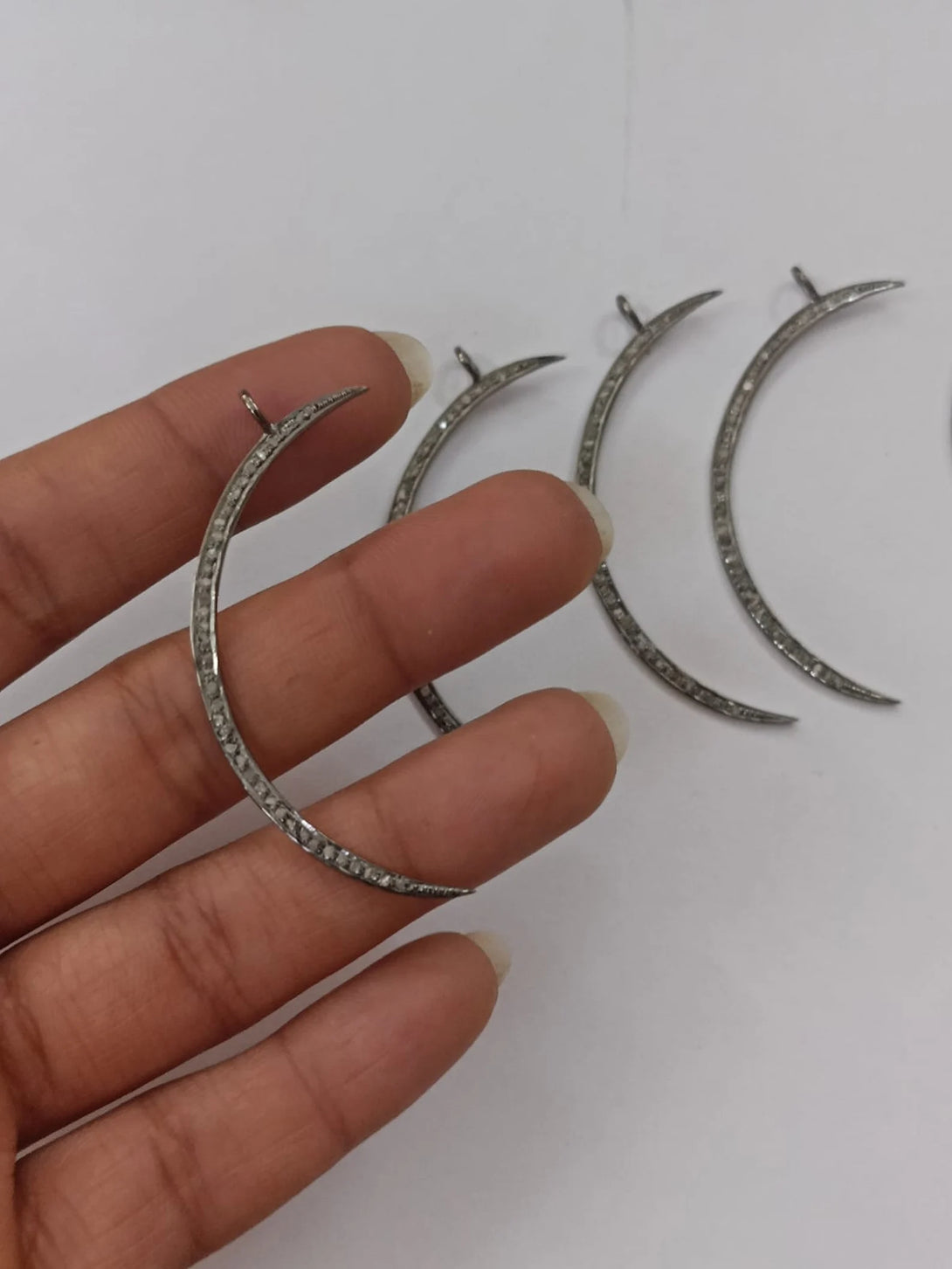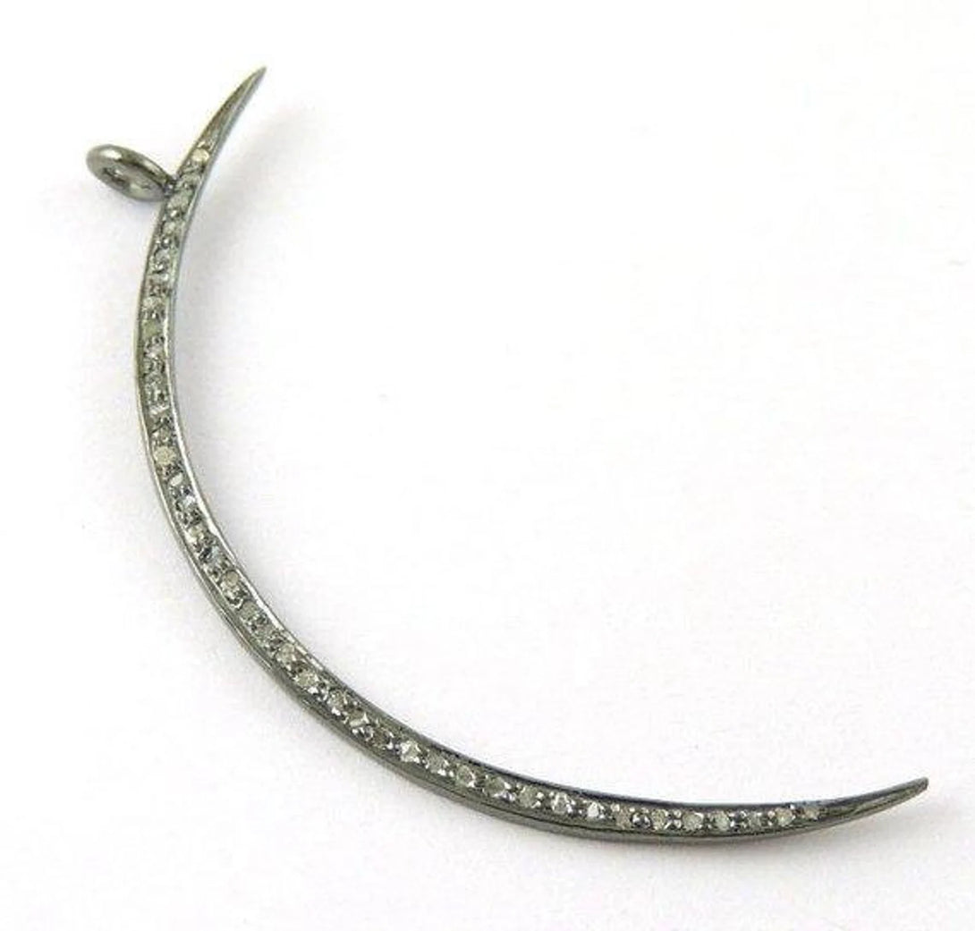 Pave Diamond Crescent Moon Pendant: 925 Sterling Silver Charm (50x2mm)