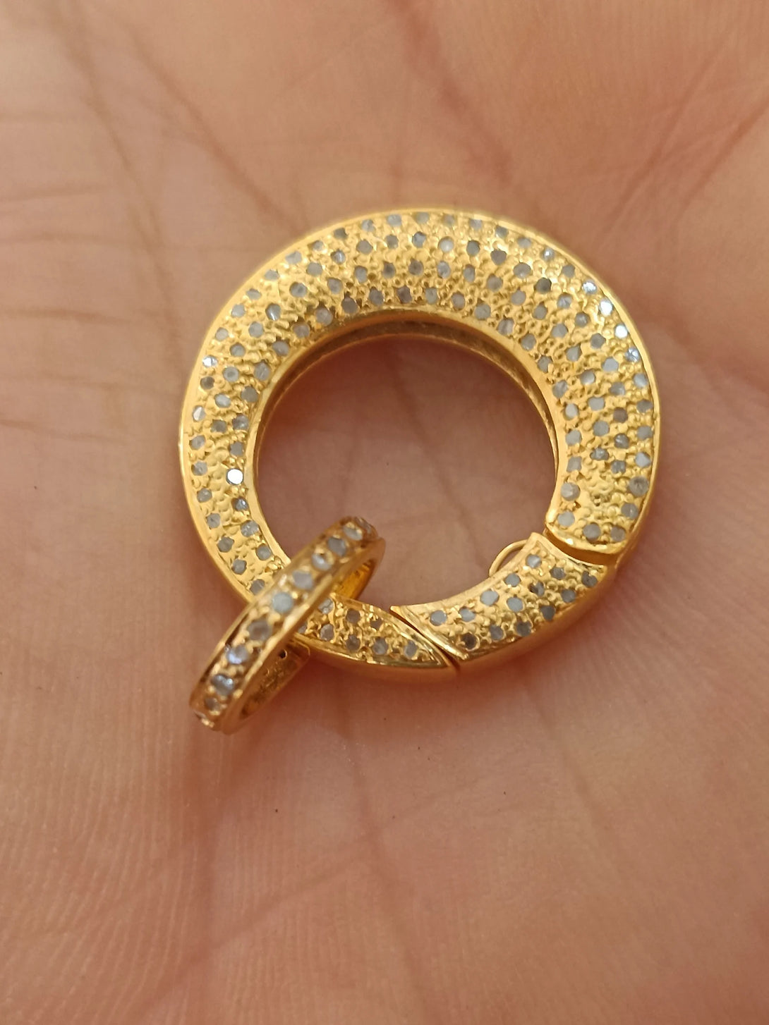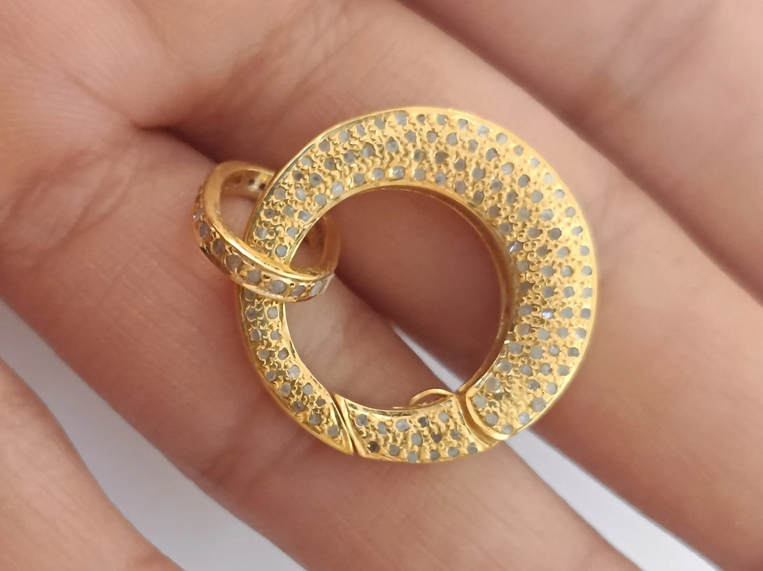 Pave Diamond Carabiner Clasps bring a modern and versatile touch to jewelry designs. Perfect for necklaces, bracelets, or charm holders, this clasp combines sparkling pave diamonds with a sleek silhouette, offering both elegance and secure functionality. Its compact size makes it ideal for daily wear while still adding a refined statement.